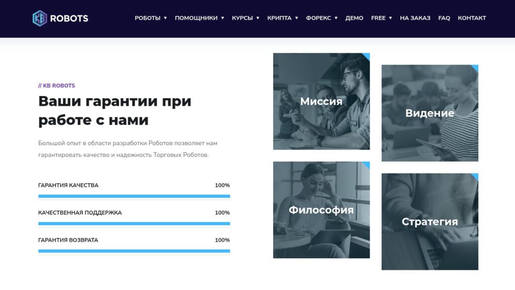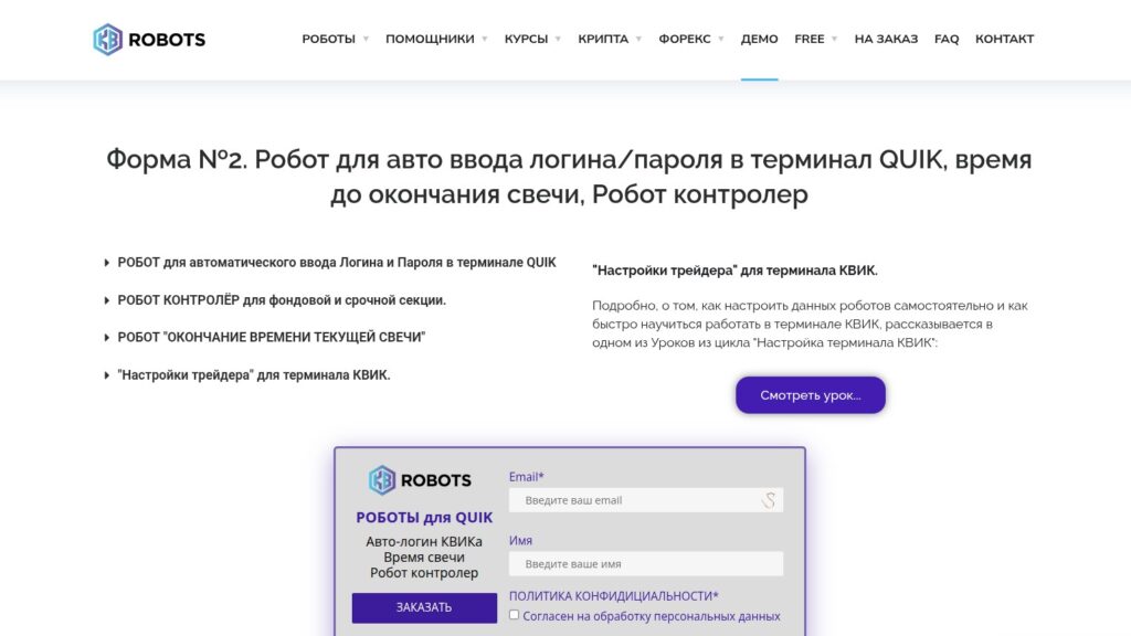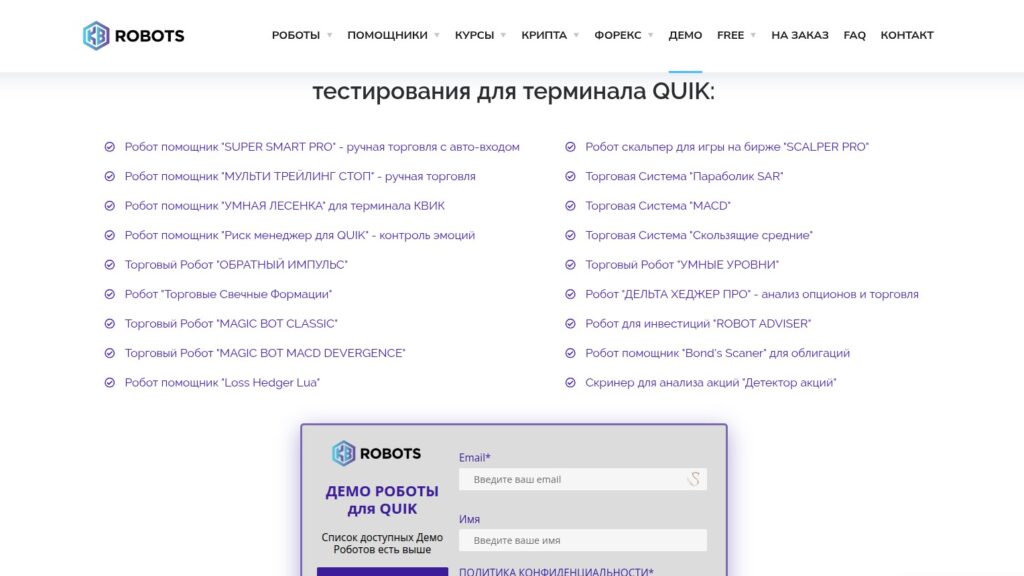 Итак, я вооружился пониманием возможностей QUIK и отправился на просторы интернета в поисках готовых решений. Признаюсь, я, как и любой нормальный человек, начал с поиска бесплатных вариантов. И вот, о чудо! Я нашел сайт https://kbrobots.ru/, который с порога заявлял о «100% гарантии качества». Знакомое чувство, не правда ли? Эйфория от найденной халявы застилает глаза и заставляет на время забыть о базовых принципах экономики: бесплатный сыр бывает только в мышеловке.