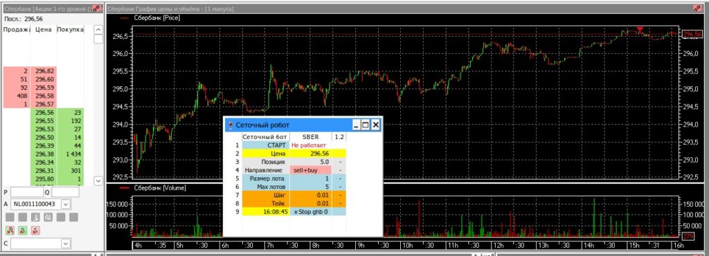 Где же тут конфликт? Давайте на живом примере. Допустим, акция «Сбербанка» стоит 320 рублей. Вы покупаете одну. Цена падает до 310 — вы докупаете еще. Падает до 300 — снова покупаете. Падает до 290 — опять докупаете. Ваш «Сеточник» радостно строит сетку.